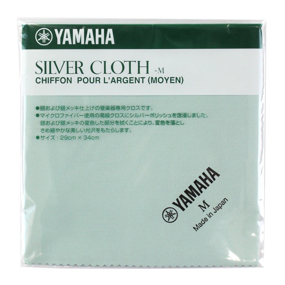 ヤマハ YAMAHA SVCM2 シルバークロス Mサイズヤマハ シルバークロス SVCM2は、銀や銀メッキ仕上げの楽器表面の変色や汚れを取り、きめ細かな光沢をもたらします。生地にマイクロファイバーを採用、汚れ取り効果とツヤ出し効果が格段に向上しました。毛玉が出にくいので、磨きやすさが長く持続します。カラーはライトグリーン、サイズは 290 x 340(mm)です。