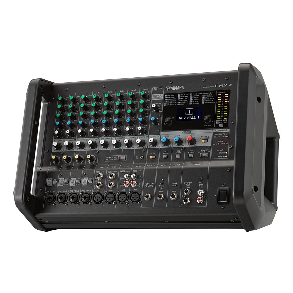 ヤマハ YAMAHA EMX7 12ch パワードミキサー1972年の発売以来数々のライブやイベント、公演会、固定設備などで利用されてきたヤマハパワードミキサー。