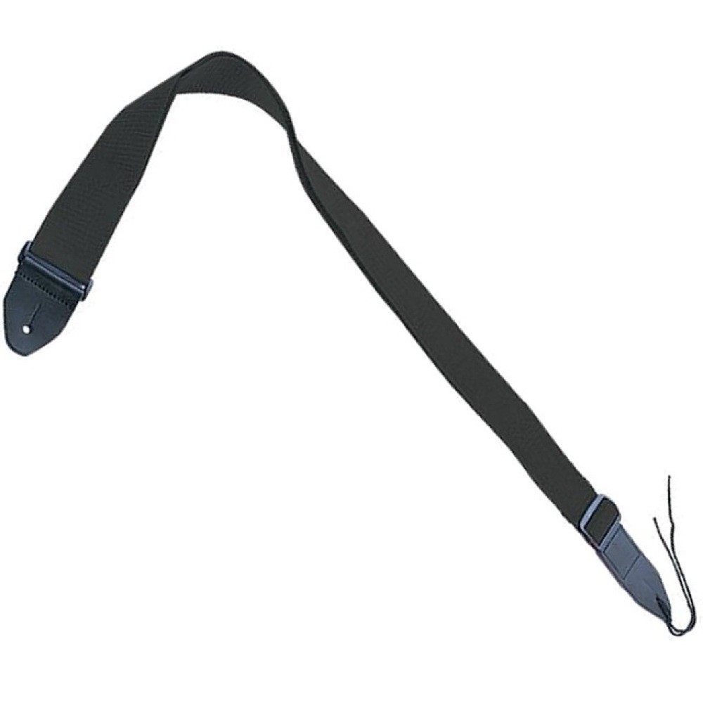 カラーはブラックです。扱いやすく定番のナイロン素材ストラップ。全長約170センチ。片側には紐が付いておりアコースティックギターでも使えます。