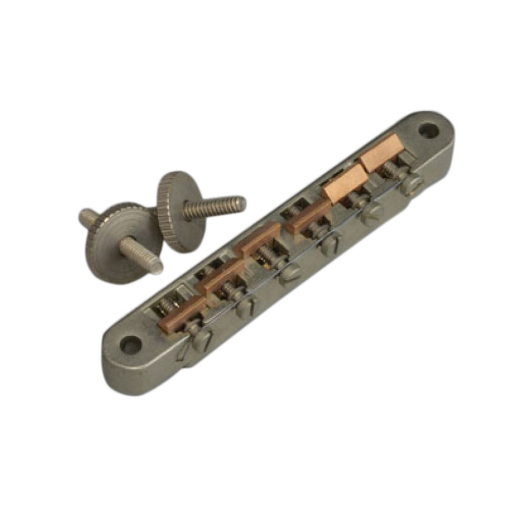 モントルー ギター ブリッジ ABR-1 style Bridge wired with Unplated Brass saddles relic Retrovibe Parts No.8741 Montreux。※ギターパーツの取り扱いには、相応の技術と知識が必要になります。自己責任にて取り扱い可能な方のみ、ご検討下さい。取り付け時に起った、楽器及びパーツの破損・損傷等につきましては当店は保証出来ません。あらかじめご了承下さい。※画像はサンプルです。詳しくは商品説明をご覧ください。1960年代以降のサドルワイヤー付きタイプ。ブラスサドルはメッキ無しです。インチ規格となっており、Gibson等に適合いたします。熟練した職人によるレリック仕様。