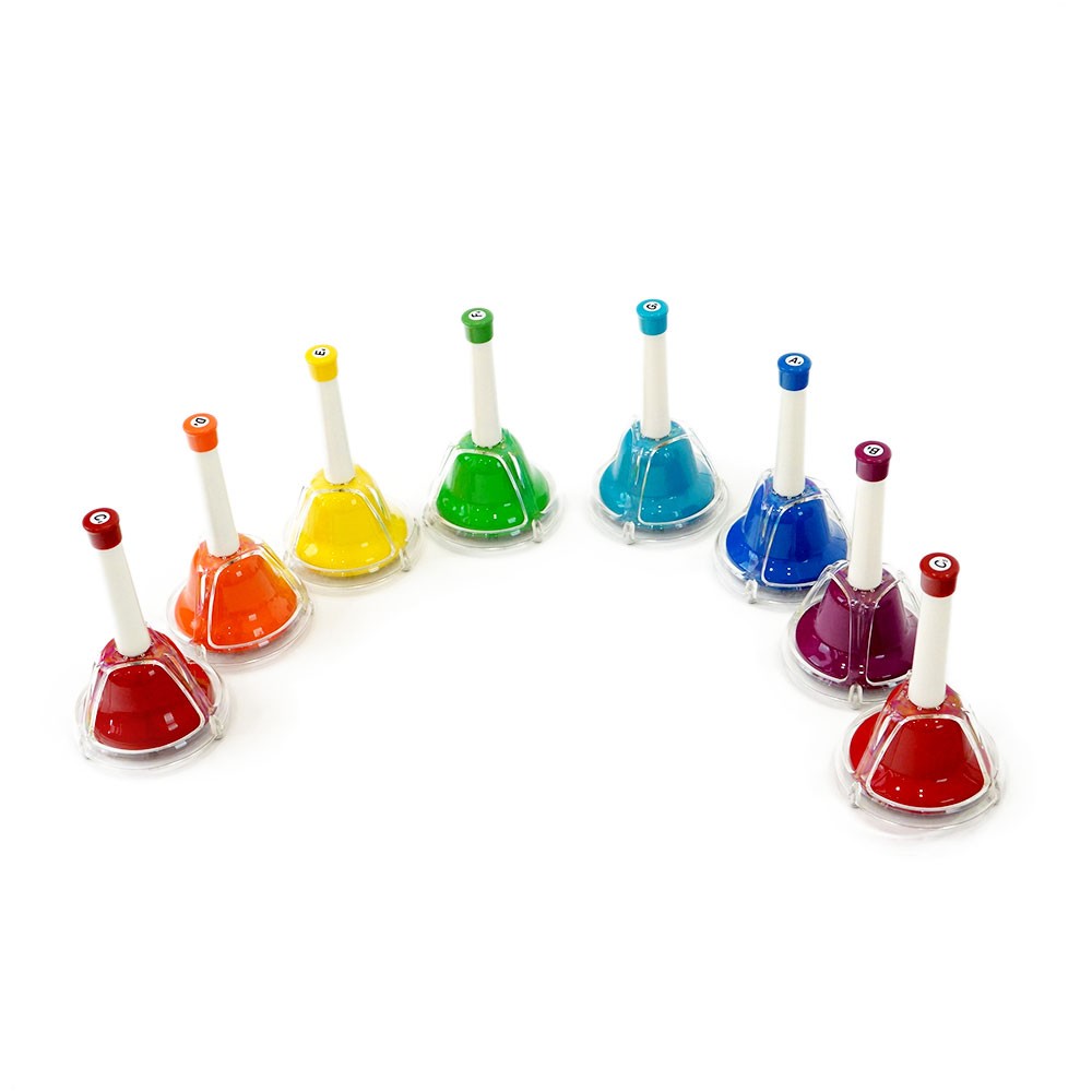 ハンドベル 8音 ゼンオン 全音 CBR-8T ミュージックベル タッチ式 学校教育の現場から、医療・地域社会と幅広く親しまれ、コンサート気分が楽しめるミュージックベル・シリーズ。「握って振る」とハンドル先端を「軽くタッチする」2通りの演奏方法があるタッチ式タイプのミュージックベルです。振る力が弱い方や、うまく振って鳴らせない方にも便利です。8音セット(C4〜C5)※実音は1オクターブ高くなります全長:154mmベル径:88mm(ガイド部含む)重量約110g(1本)ケース別売り