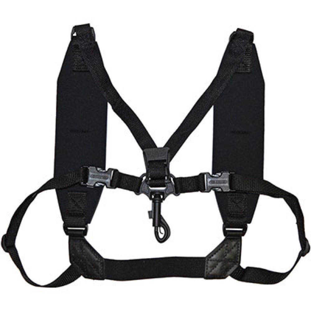 機能的であるだけでなく、非常に快適なハーネスストラップです。弾力性のあるサポートシステムを採用したネオプレンが、重い楽器の負担を軽減し、奏者の動きの自由度を高めます。ハーネスデザインによってによって奏者の動きが制限されることはありません。マーチングバンド奏者や、長時間のリハーサルや演奏をする奏者には理想的なストラップです。スナップフック/ループフックコネクタは、素早く簡単に取り付けることが可能です。