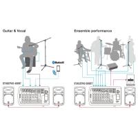 ※本製品と同一周波数帯 (2.4GHz) の電波を使用する機器 (ワイヤレスマイク送信機など) と同時に使用する際はSTAGEPASのミキサーから1m以上離してください。電波の干渉でBluetoothの再生に音切れが発生する可能性があります。