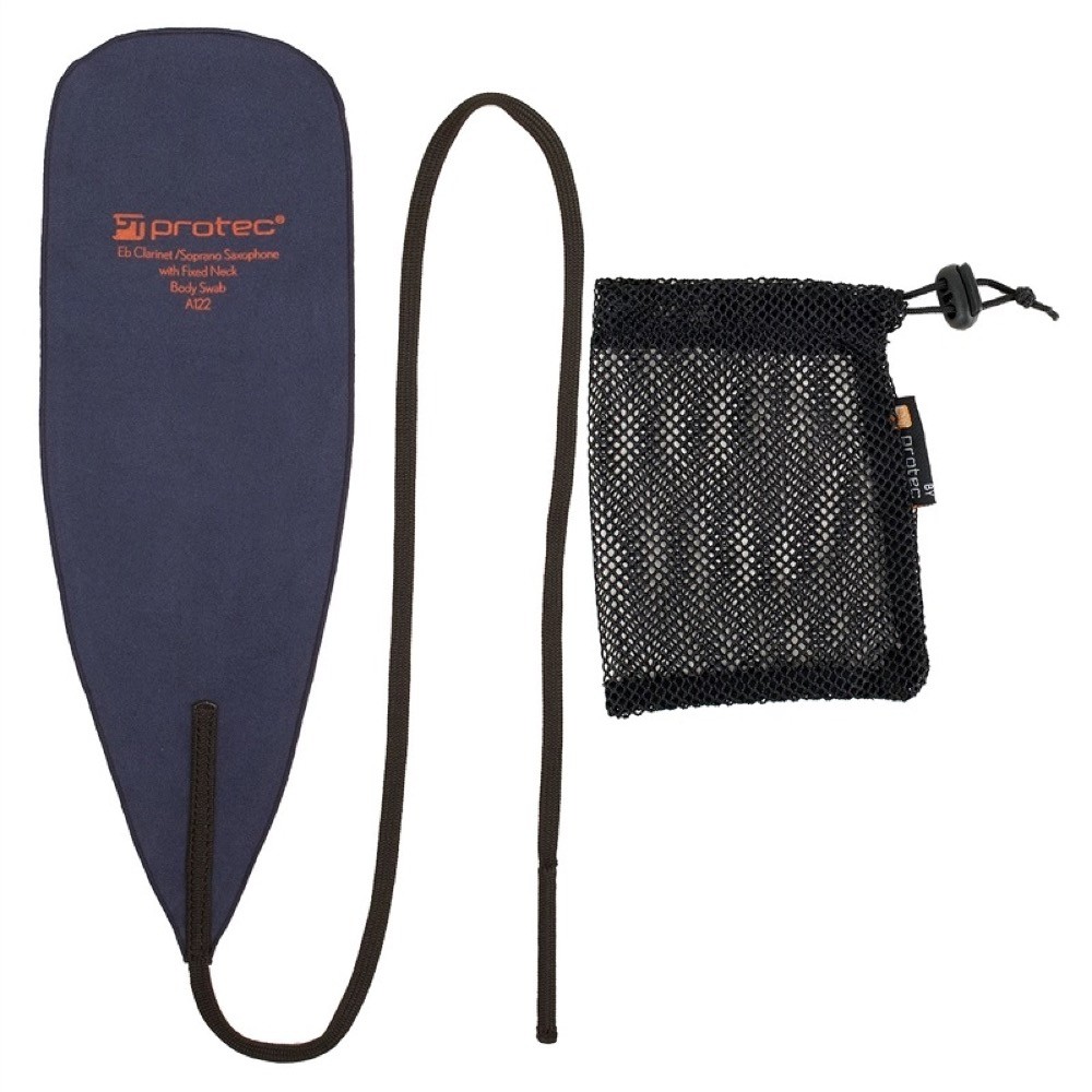 PROTEC A122 E♭クラリネット ソプラノサックス用 クリーニングスワブE♭管クラリネットとソプラノサックス(ネック一体型)のボディ用のクリーニングスワブです。吸水性の高いマイクロファイバー製で、管内の水分をしっかり拭き取ります。また、メッシュ加工のポーチも付属しており、コンパクトに収納できます。 E♭クラリネット ソプラノサックス用