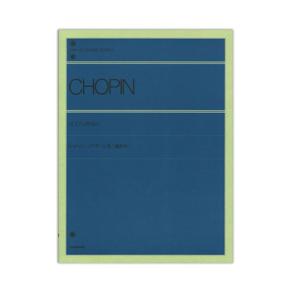 全音楽譜出版社全音ピアノライブラリー ショパン ノクターン集 遺作付【楽譜】ショパンの特色を最も著しく現している曲集で、その感傷的な旋律の美しさはピアノ曲中随一です。遺作の嬰ハ短調、ハ短調も含め、計21曲を収載しました。