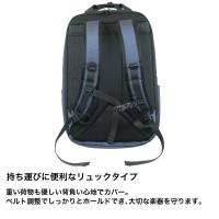 重い荷物も優しい背負い心地でカバー。ベルト調整でしっかりとホールドでき、大切な楽器を守ります。