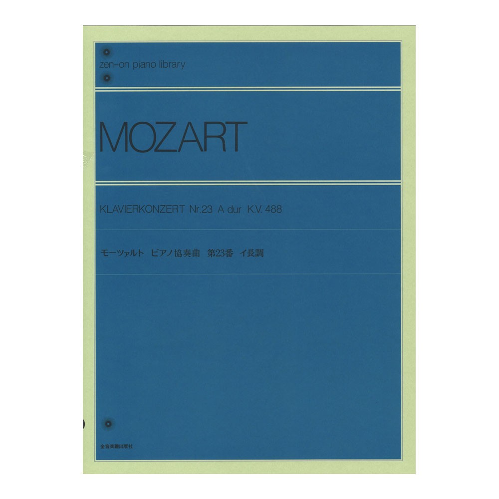 全音ピアノライブラリー モーツァルト ピアノ協奏曲イ長調 標準版 K.V.488 全音楽譜出版社