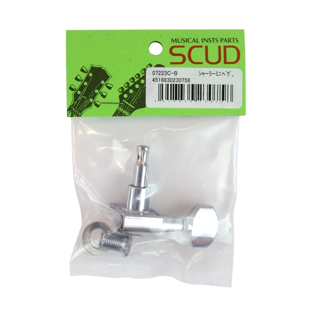 スカッド ギターペグ 07223C-B 6連用 シャーラーミニタイプ クローム バルク ペグ SCUD。※ギターパーツの取り扱いには、相応の技術と知識が必要になります。自己責任にて取り扱い可能な方のみ、ご検討下さい。取り付け時に起った、楽器及びパーツの破損・損傷等につきましては当店は保証出来ません。あらかじめご了承下さい。国内外から優れた楽器パーツを集めリペアや製作の現場からも高い評価を受けているSCUD(スカッド)パーツです。普及率の高い汎用パーツから実用性の高いアイデアパーツまで 豊富なアイテムを取り揃えております。シャーラーミニタイプのペグです。6連用、1個販売になります。バルクペグ 6連用シャーラーミニタイプ、クローム、ビス付