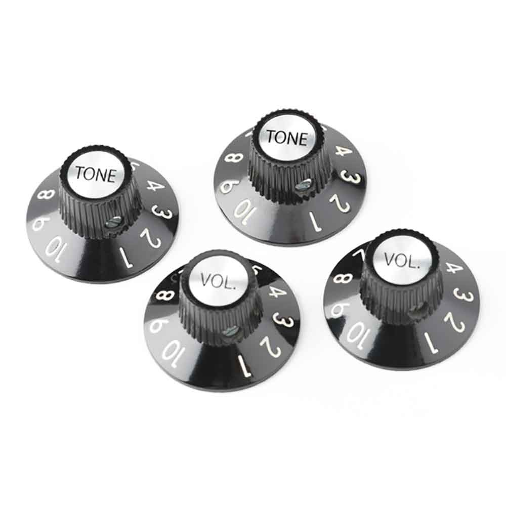 メキシコ製'72 Telecaster Custom専用のプラスチック製コントロールノブ4個セット("volume"2個、"tone"2個)。取付用スクリュー付属。