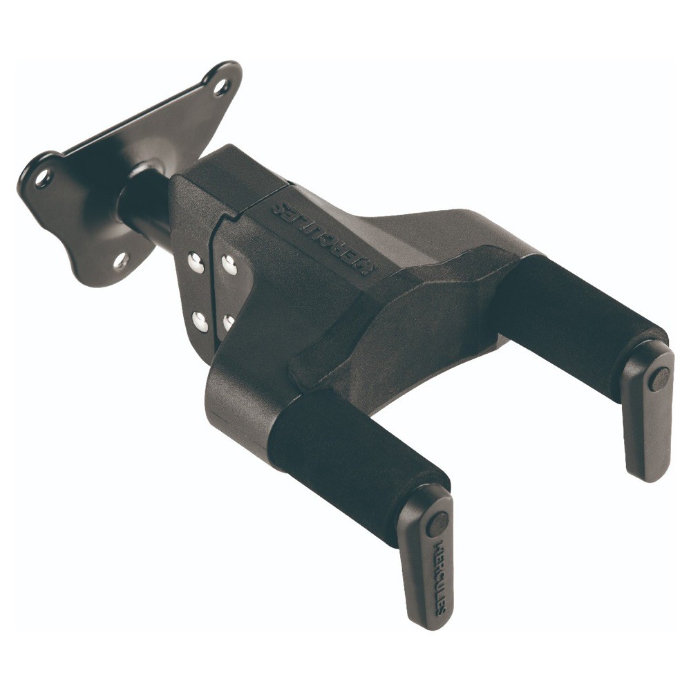 ギターハンガー ハーキュレス HERCULES GSP39WB PLUS ギタースタンド 壁掛け ギター小物。ソリッドボディーギターに適したショートネックのハンガー。壁にネジ止めするタイプです。AS-yoke機能により片連ペグタイプのヘッド形状でも垂直に保持されます。SFF(スペシャルフォーミュレイテッドフォーム)ゴムが、ギターにあたる部分に使用され保護します。AGS(オートグラブシステム)は、楽器の重量で下降し、同時にアームが上がりネックを掴むように保持します。新形状へ更新されたAGSは付属の付属アタッチメントNINA(ナロー・インストゥルメント・ネック・アジャストメント)をネック保持部に取り付ける事で、より細いネックの楽器に対応します。NINAはSFF(スペシャル・フォーミュレイテッド・フォーム)ゴムを採用し楽器を保護します。AS(AutoSwivel)-yoke(自動回転軸)は左右30度まで回転し、ギター/ベースを垂直に保持します。全長:155mm耐荷重:7 kg