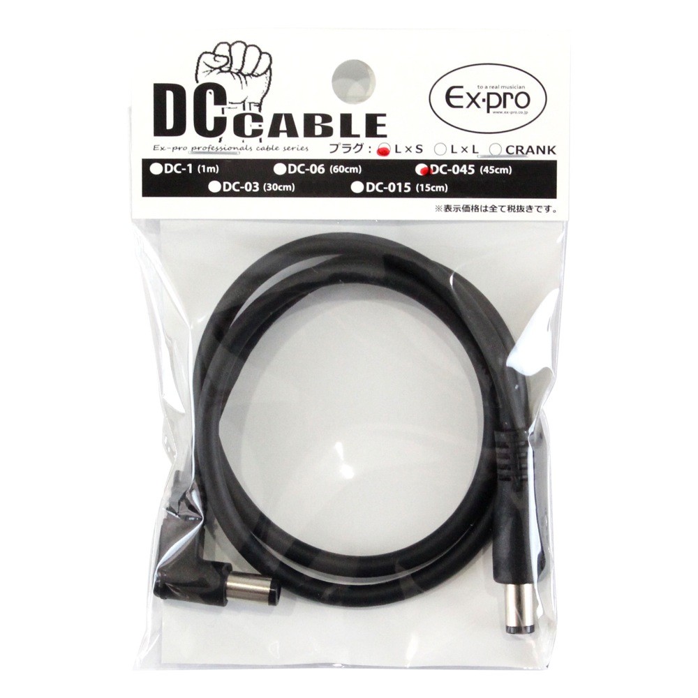 EX-PRO DC-045LS 45cm DCケーブル【4Φの太さの線材を採用し高音質、安定した電源供給をサポート】プレイヤーの足元に所狭しと並んでいるエフェクターたち。プレイヤー個々のプレイスタイル・キャラクターが違うのと同じく、ペダル群にもさらに多種多様化が進んでいる。そのエフェクターへの電源供給にも多様化は存在します。「DC9Vのセンターマイナス」これが一番スタンダードといわれる電源で、他にもDC9V、12V、15V・・・AC9Vや12V・・・センタープラスなど必要に応じてエフェクターが求める電源供給方法は違います。そんなエフェクターと電源を繋ぐケーブルをDCケーブルと呼んでいます。