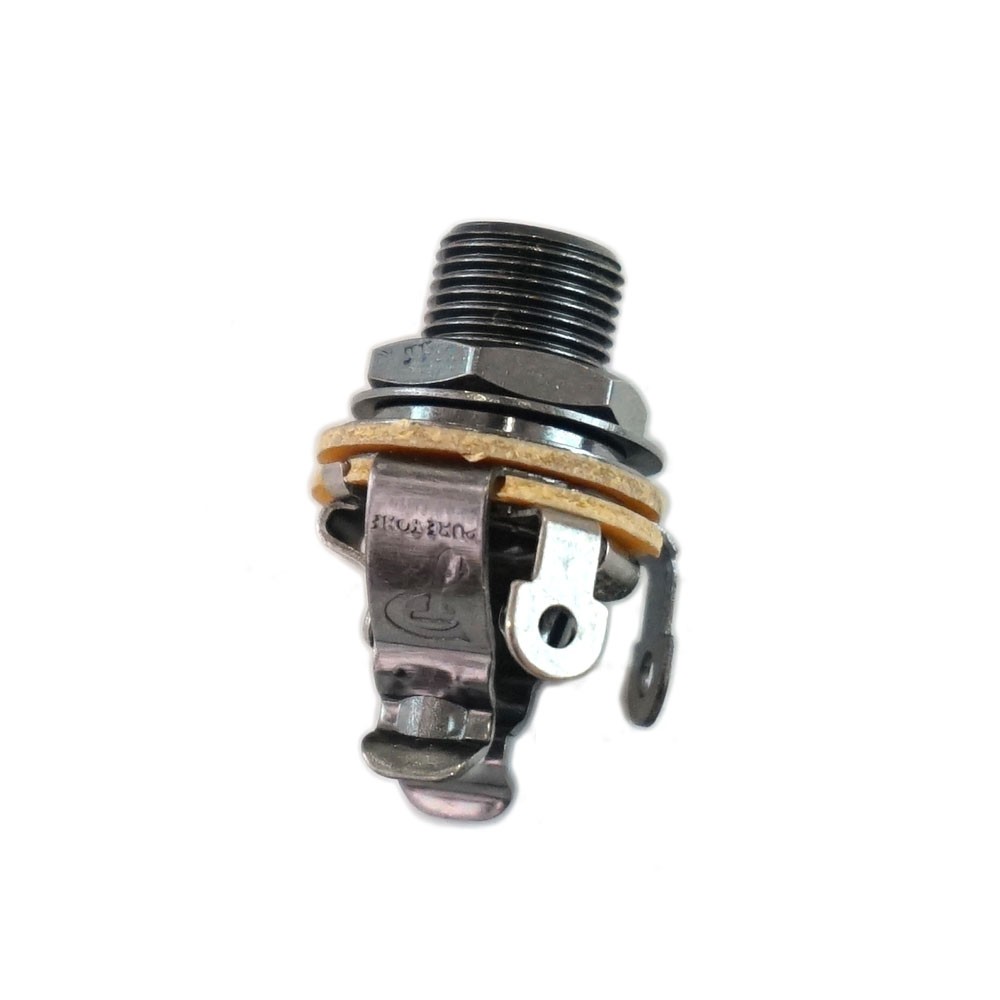 モントルー ギタージャック Pure Tone PTT1BN Black No.9682 ギターパーツ Montreux。※ギターパーツの取り扱いには、相応の技術と知識が必要になります。自己責任にて取り扱い可能な方のみ、ご検討下さい。取り付け時に起った、楽器及びパーツの破損・損傷等につきましては当店は保証出来ません。あらかじめご了承下さい。ジャックの接触不良による「バリバリ」いうタイプのノイズトラブルは、ジャックの筒部分が酸化することによって起こるアース不良がほとんどです。アースをつなぐ「スリーブ端子」にも板バネ状の接触端子を搭載したこのジャックが、トラブルリスクを減らしてくれます。さらに各接触端子には、プラグ形状に合わせたカーブや凹凸も付けられているので、それぞれ2〜4点の接点があり、導通のバックアップが期待されます。接触不良になりがちなジャックに不安を感じていたプレイヤーに、この接点の充実したジャックをお勧めします。Color : Black