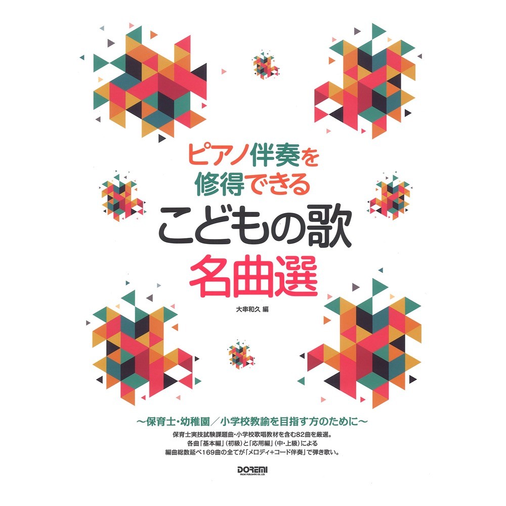 ドレミ楽譜出版社ピアノ伴奏を修得できる こどもの歌名曲選 【楽譜】保育士、幼稚園・小学校教諭を目指す方のための、保育士試験課題曲、小学校歌唱共通教材を含む、こどもの歌の伴奏+弾き歌い曲集です。右手メロディ、左手コード伴奏による編曲で、各収載曲には基礎的なコードとリズムで弾ける「基本編」と、リムズに変化をつけたりコードの種類を増やした「応用編」の2パターンを掲載。初学者の方でも無理なく保育・教育現場でのピアノ伴奏付けができるようになります。