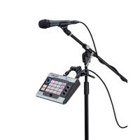 『V3』はデスクトップで快適に操作できるほか、別売オプションのハンディレコーダーマウント『HRM-7』/『HRM-11』を使用して、マイクスタンドに設置することも可能。ライブステージで歌いながら、パッドを叩いたり、ツマミを回すことができます。