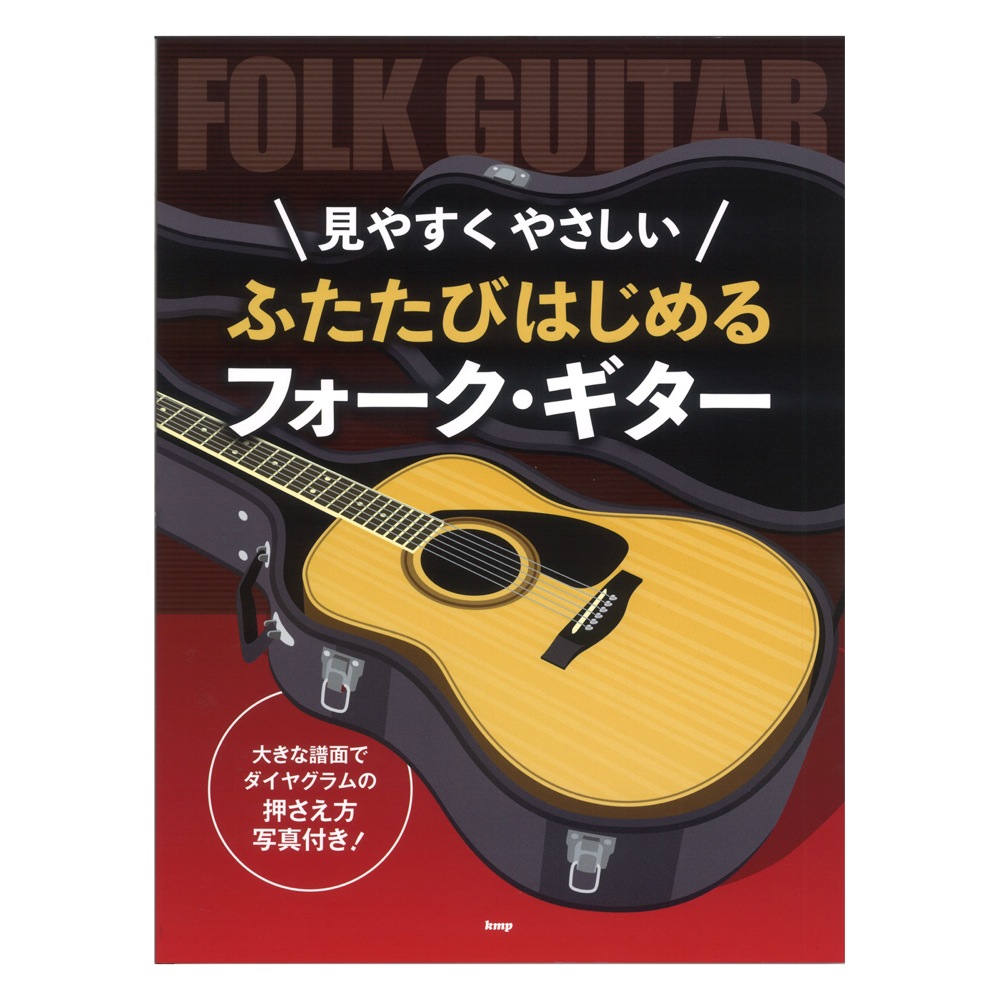 見やすくやさしい ふたたびはじめる フォーク・ギター 大きな譜面でダイヤグラムの押さえ方写真付き! KMP
