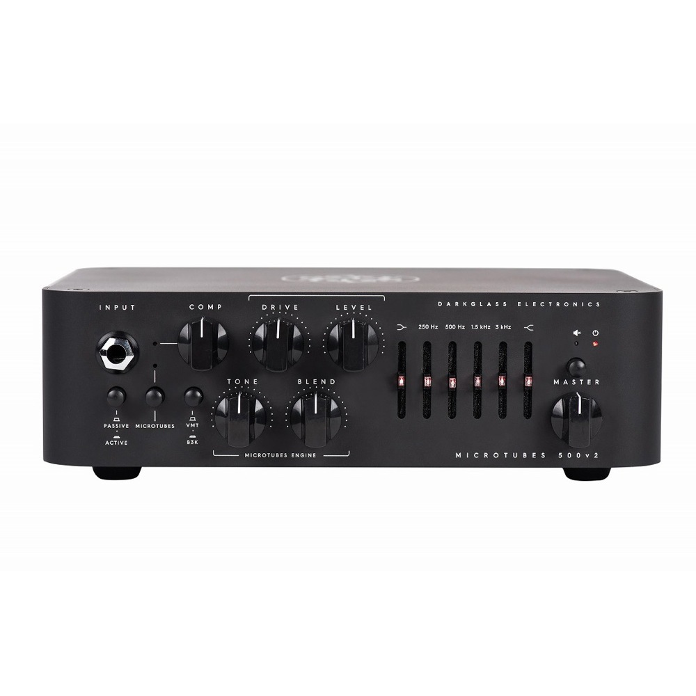 ダークグラス ベースアンプ Darkglass Electronics Microtubes 500v2 小型ベースアンプ ヘッド MICROTUBES 500がアップグレードし、MICROTUVES 500v2として生まれ変わりました。Darkglassが独自に開発した超高効率500Wパワーアンプモジュールを搭載。ベースでの使用に特化したパワーアンプはサイズからは想像できないパワーを発揮します。機能・超低ノイズ6 バンドグラフィックEQ 搭載・スタジオグレードVCA コンプレッサー搭載・IR( キャビネットシミュレーション) を3つ搭載可能・AUX インプット搭載・PC/mac とUSB で接続・ヘッドフォンアウト搭載・独自開発の高効率Class-D アンプ搭載