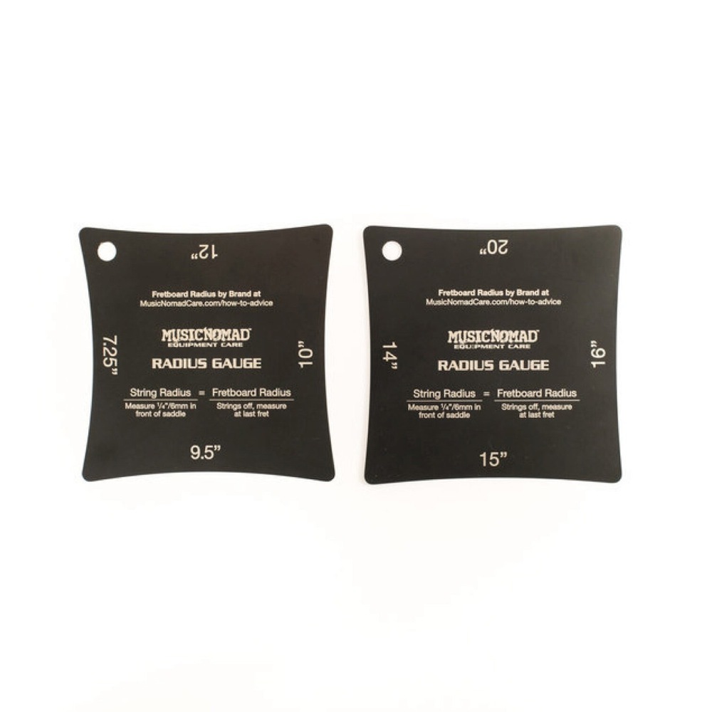 Music Nomadの高精度ラディアスゲージは正確な測定値(7.25インチ、9.5インチ、10インチ、12インチ、14インチ、15インチ、16インチ、20インチ)が表記。最終フレットで指板を測定し真ん中の空間やフィット感を正確に確認する事が可能です。