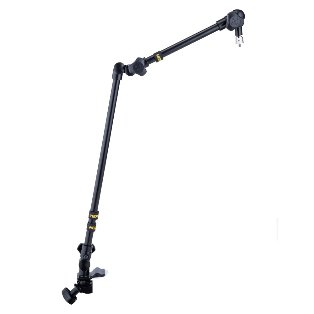 HERCULES DG107B マイク用アームスタンドハーキュレス・スタンドより、自宅録音やウェブ配信に便利なアイテムが登場!!自宅などで手軽に行うレコーディングやウェブ配信用に最適なアーム式スタンド。カメラを装着できる1/4インチのネジアダプターも装備しているので撮影用スタンドとしても使用できます。アーム部は3つの支点でセッティングできるので様々な角度調整が可能です。別売のスマートデバイス用ホルダー:DG207B、DG307Bの拡張用スタンドとしても使用できます。【スペック】・Mic Thread:3/8 & 5/8・Camera Thread:1/4-20・Round tubes:15.8ー30mm・Square tubes:18-25.4mm・Clamp fits desk thickness:10-25.4mm・Weight:720g・Load capacity:1Kg