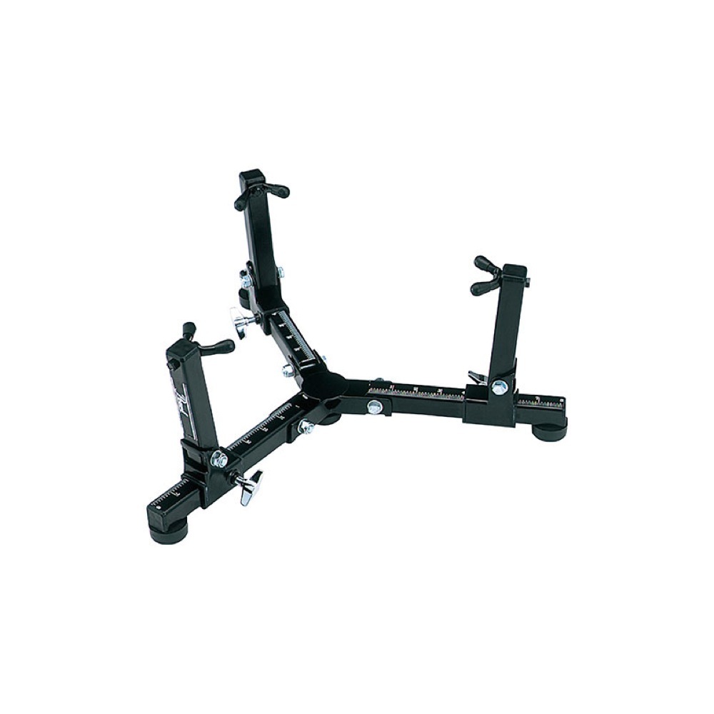 様々なサイズに対応する、低いセッティング用のコンガスタンド。