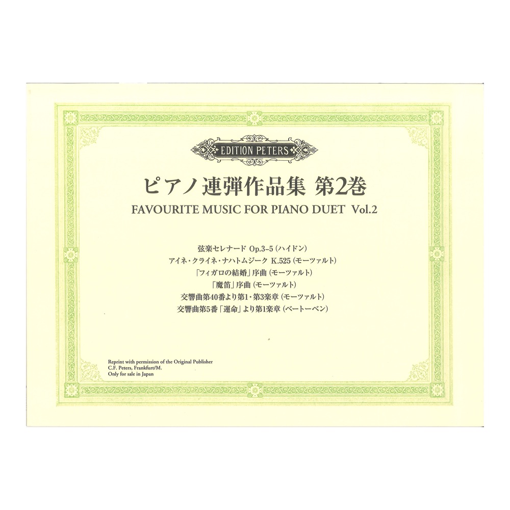 ヤマハミュージックメディア日本語ライセンス版 ピアノ連弾作品集 第2巻 【楽譜】第二巻はハイドン、モーツァルト、ベートーヴェンの作品を取り上げました。ピアノ連弾で奏でる一味違った魅力をお楽しみください。【収載曲】[1] 弦楽セレナード Op.3-5[2] アイネ・クライ・ネナハトムジーク K.525[3] 「フィガロの結婚」序曲[4] 「魔笛」序曲[5] 交響曲第40番より第1楽章[6] 交響曲第40番より第3楽章[7] 交響曲第5番「運命」より第1楽章仕様:菊倍判横/76ページ商品構成:楽譜JANコード:4947817287957ISBNコード:9784636979800出版社:ペータース社楽器:ピアノ編成:連弾難易度:中級/上級