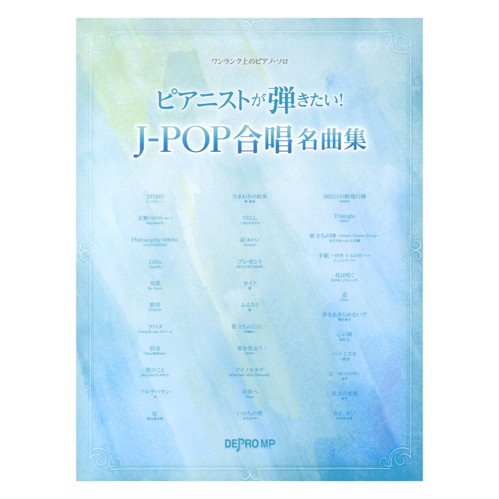 デプロMPワンランク上のピアノソロ ピアニストが弾きたい! J-POP合唱名曲集 【楽譜】合唱曲としても人気のあるJ-POPの曲を原曲のテイストを生かしたピアノ・ソロにアレンジしました。曲のつかみやすい歌詞付きの楽譜です。