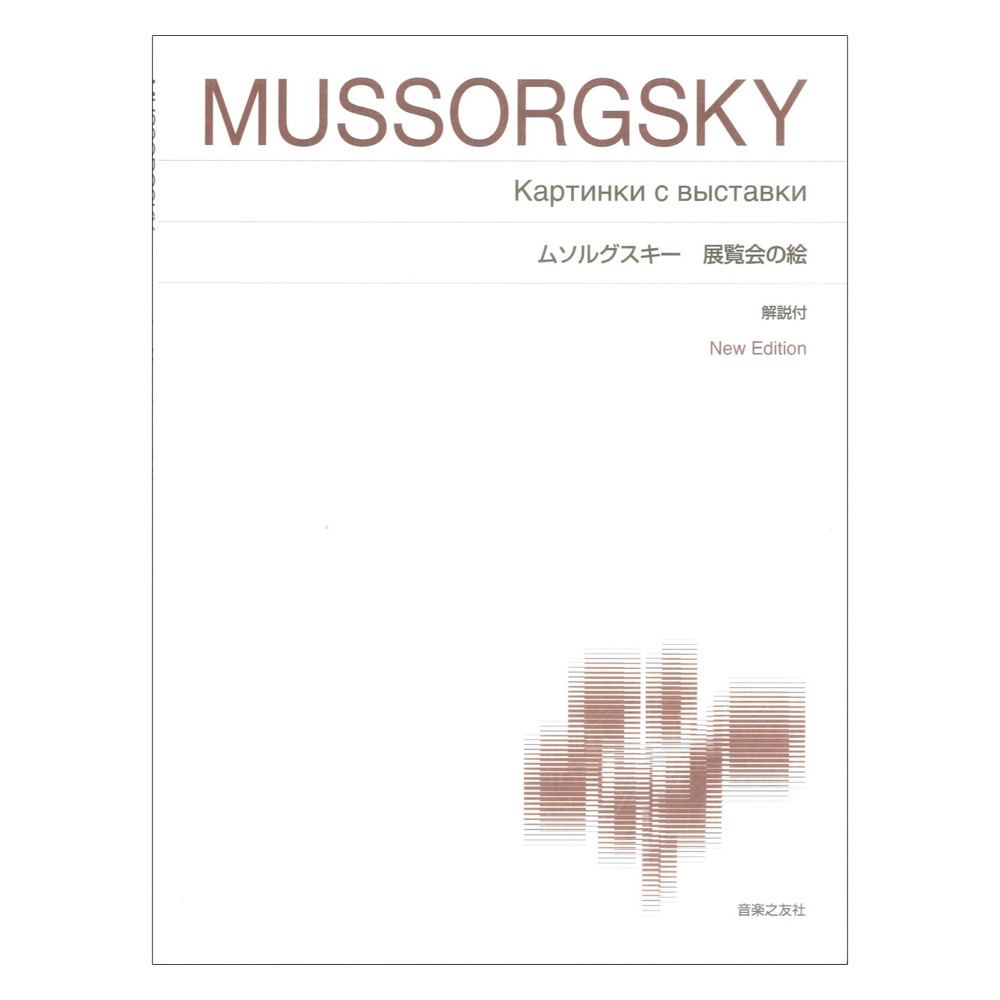 New Edition 解説付ムソルグスキーの「展覧会の絵」を標準版で新しく刊行。知名度の高い人気曲に、より取り組みやすくするために、ピアニストの朴久玲により小さな手でも弾ける効果的な運指がついた。解説は作曲家であり音楽学者である西尾洋が、楽曲分析を含め執筆。正統的な西洋音楽の語法から一線を画し、独自のロシア的音楽語法を模索したムソルグスキーの音楽が丁寧に解説されている。譜面は原典版をもとにした音楽之友社オリジナル版。「展覧会の絵」をさらに深く知り、親しめる楽譜である。