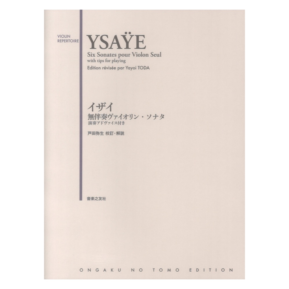 偉大なヴァイオリニストにして作曲家でもあったイザイによる名作。ミルシテイン、ギンゴールド、プリムローズなど名だたる演奏家を育てたイザイ自らが書いたヴィルトゥオーゾ作品で、ヴァイオリニストにとって永遠の挑戦曲である。全6曲からなり、シゲティ、ティボー、エネスク、クライスラーなど、それぞれが偉大なヴァイオリニストに捧げられている。各曲が非常に個性豊かで、コンクールの課題曲としてもよくとりあげられている。校訂・運指・解説はエリーザベト王妃国際音楽コンクールで優勝を果たし、その後審査員も務める戸田弥生。すさまじい熱量の彼女の演奏の秘密を垣間見ることのできる、学習者必見の版である。