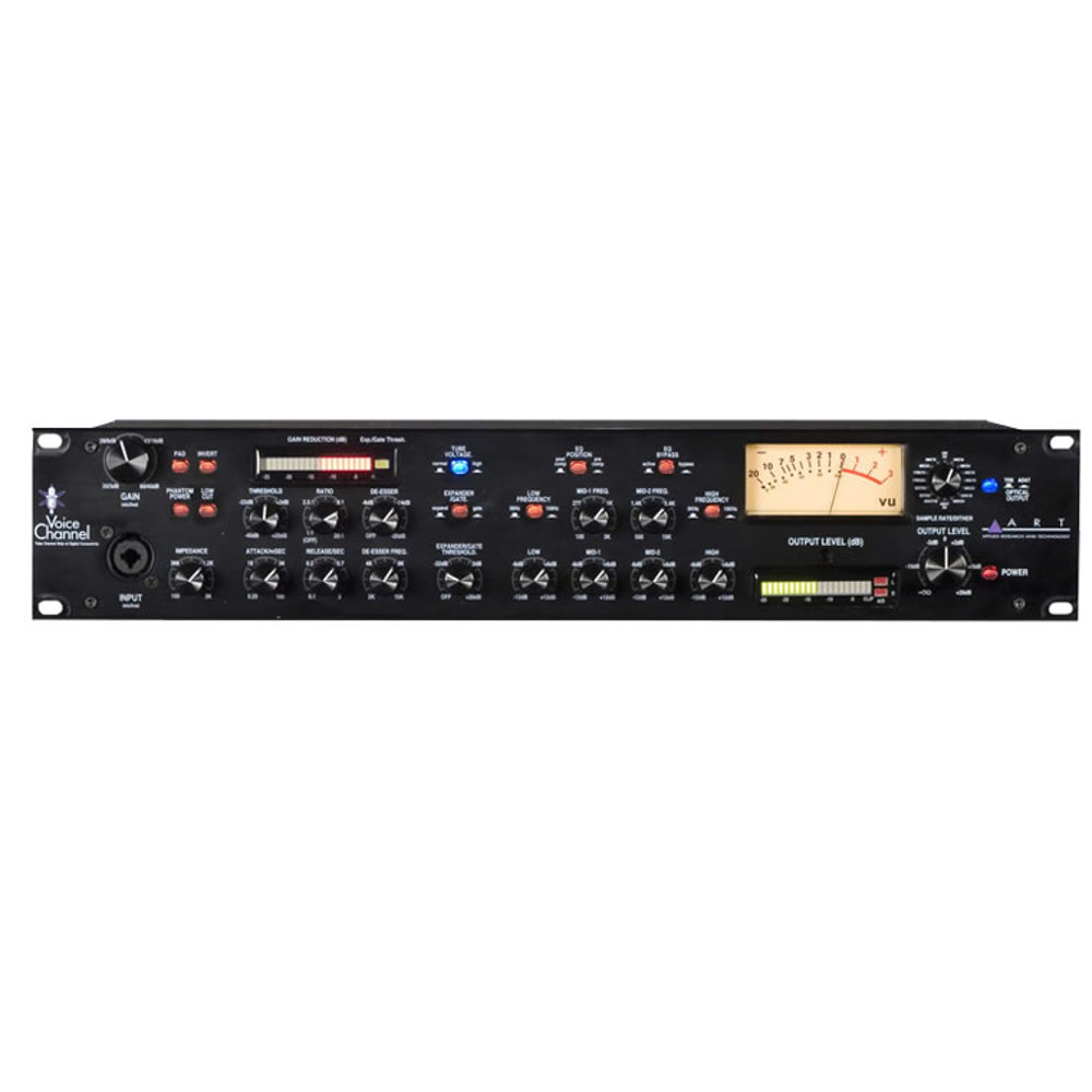 ART エーアールティー Voice Channel 真空管マイクプリ・チャンネルストリップ with デジタルアウト【概要】活きたパフォーマンスを活きたトラックにするためには、真空管プリアンプの温かさや存在感とクリアーさが必要不可欠です。デジタルレコーディングの限られたダイナミクスに優れたサウンドを得るためにはダイナミクスのコントロールが重要です。Voice Channelは、多彩かつ優れたサウンドが得られるディスクリート・クラスA真空管マイクプリアンプにコンプレッサー、ディエッサー、ゲート、エキスパンダー、セミパラトメリックEQを搭載し、スムーズなダイナミクスコントロールを実現します。クリアーなADコンバーターを搭載しているので、オーディオ・インターフェイスやレコーディング・システムに多様なフォーマットでデジタル出力できます。