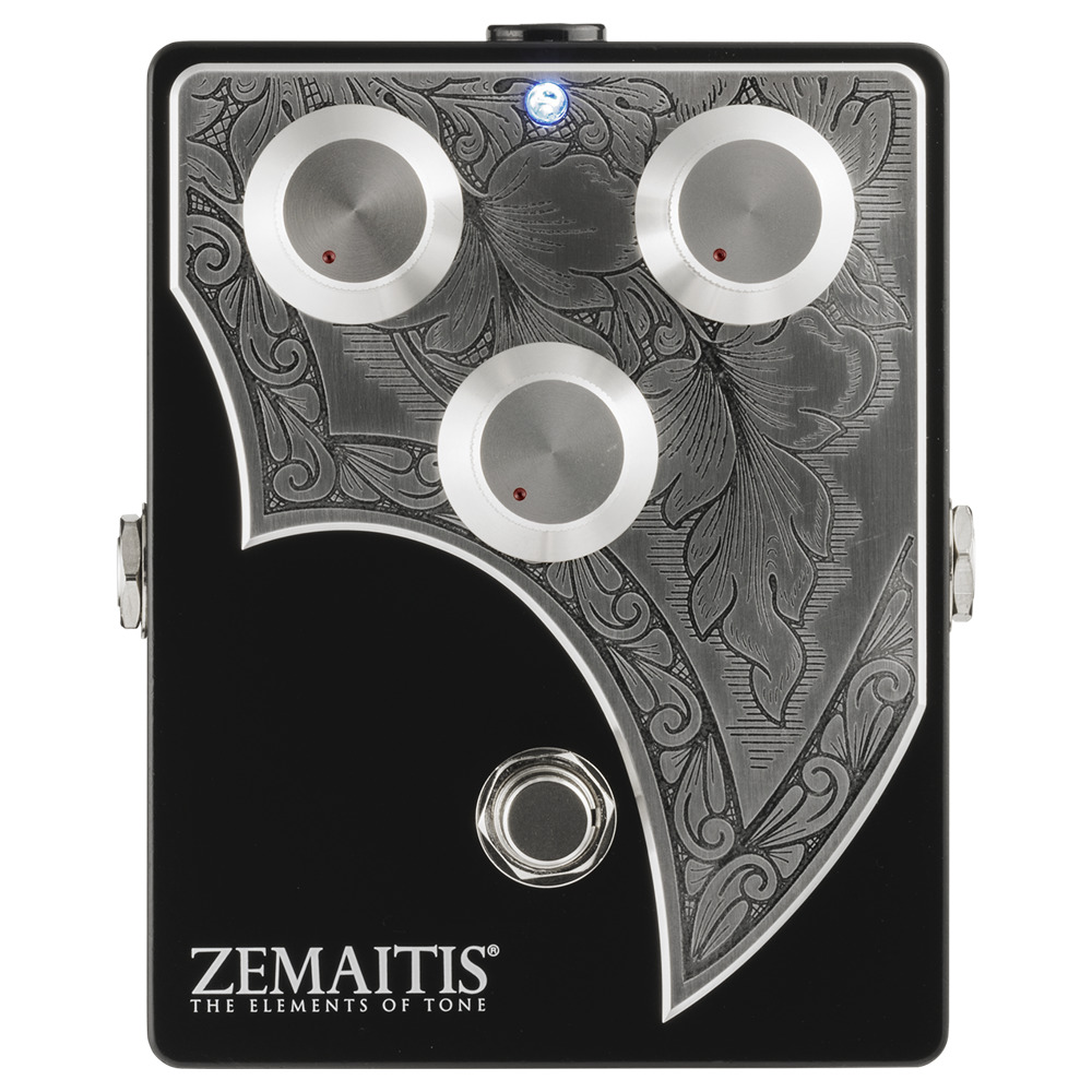 ゼマイティス オーバードライブ ベース用エフェクター ZMF2023BD Metal Front Bass Overdrive Pedal ZEMAITIS。ゼマイティス・メタル・フロントの彫金デザインを投入したベース用ハンドメイド・オーバードライヴ「ZMF2023BD」登場!ゼマイティスより、ベース用ハンド・メイド・オーバードライヴ「ZMF2023BD」が登場しました。ZMF2023BDは、ゼマイティスを代表するメタル・フロント・ベースのイメージを投入し、曲線を生かした形状の贅沢な彫金の入ったアルミ合金のプレートをトップに装飾したコンパクト・エフェクターです。マット・ブラック・カラーのケースは、堅牢なアルミ合金の筐体で、数々の有名エフェクターでも採用されているハモンド製を用いています。コントロール・ノブは、ゼマイティスで使用しているメタル製のハット・ノブを採用することで、エフェクターでありながら、メタル・フロント・ベースをイメージしたデザインとなっています。