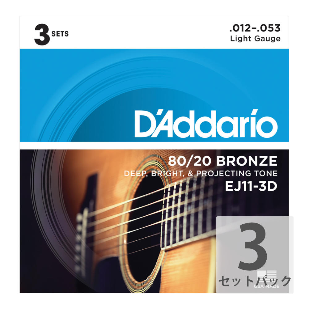 D'Addario ダダリオ EJ11-3D 80/20 Bronze Light 3セットパック アコースティックギター弦 ライトゲージ 12-53