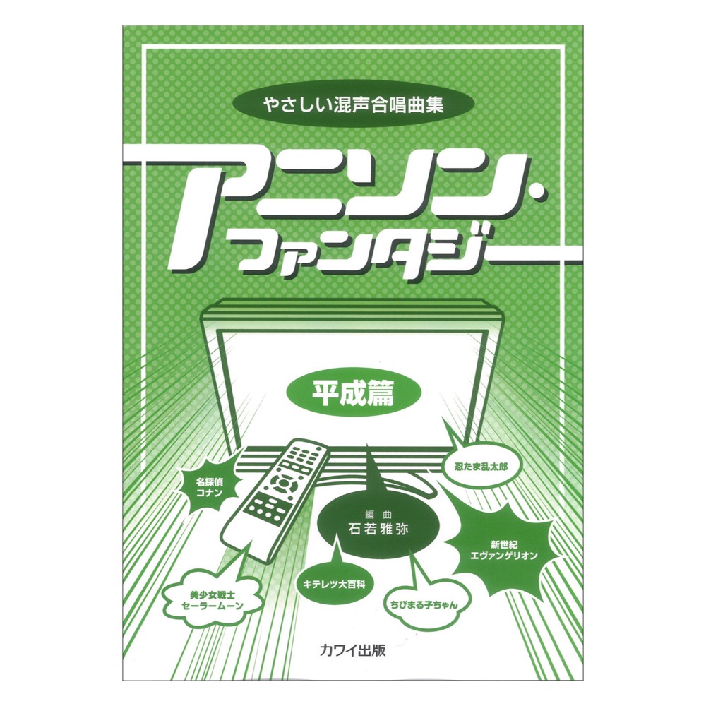 カワイ出版石若雅弥 やさしい混声合唱曲集 アニソン・ファンタジー 平成篇 【楽譜】2011年7月に出版した女声版に続く混声版。原作のアニメを知らなくても世代を超えて楽しめて盛り上がれる楽曲を中心としたとてもやさしい混声合唱。思いっきり楽しんで歌ってください。女声合唱団との合同演奏も可能です。全6曲。1 おどるポンポコリン(ちびまる子ちゃん)(2’50\”)2 ムーンライト伝説(美少女戦士セーラームーン)(3’00\”)3 はじめてのチュウ(キテレツ大百科)(4’50\”)4 残酷な天使のテーゼ(新世紀エヴァンゲリオン)(4’15\”)5 キミがいれば〜名探偵コナン メイン・テーマ〜(2’10\”)6 勇気100%(忍たま乱太郎)(4’30\”)編曲:石若雅弥A4判/48頁グレード:初〜中級演奏時間=約16分10秒 ISBN 978-4-7609-2782-1
