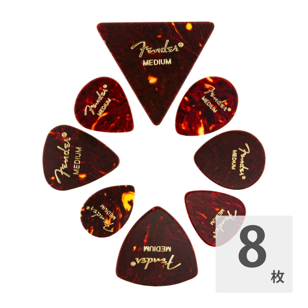 Fender フェンダー All Shapes Celluloid Medley Tortoise Shell (べっ甲柄)Medium ギターピック 8枚入り