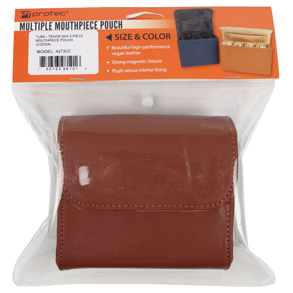 PROTEC プロテック A273CC ココア チューバ用マウスピースケース 1〜2本収納可能 美しく、高級感漂う Vegan Leather(合皮)。 内装裏地は、豪華なベルボア地。 開閉部はマグネット式で、しっかりとフィット。洗練されたデザインを演出。 ベルトやショルダーストラップに取り付ける為の、多用途の背面ループ。 ・カラー:ココア
