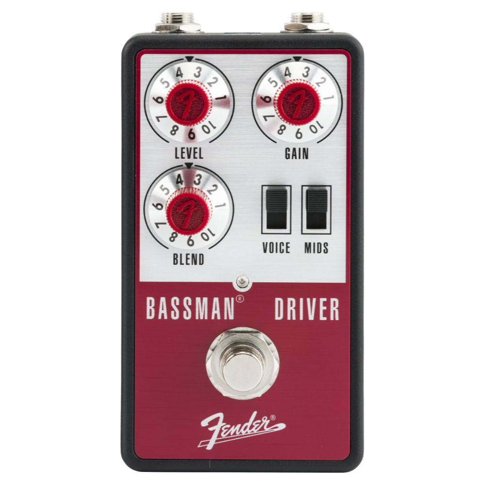 Fender フェンダー Bassman Driver オーバードライブ ディストーション ベースエフェクター Bassmanペダルは、あらゆるベースに対応する、多彩なエフェクトをラインナップしています。Fenderのローエンドシグナルプロセッシングを確立したオリジナルのチューブアンプからインスピレーションを得たBassmanペダル製品は、アナログとデジタルの回路を一から丹念に作り上げ、ベースのサウンドパレットを広げるコレクションです。 Bassman Driverは、ローエンドはそのままに、チューブゲインのようなナチュラルな歪みから、ハイゲインディストーションまで、様々なゲインキャラクターが得られます。JFET回路とダイナミックなクリッピングステージを駆使したこのペダルは、シグナルが歪み始めるベースチューブアンプの動作をエミュレートしています。Voiceスイッチを上向きに切り替えると、クリッピングのスレッショルドレイヤーが追加され、ヘヴィでモダンなディストーションが得られます。