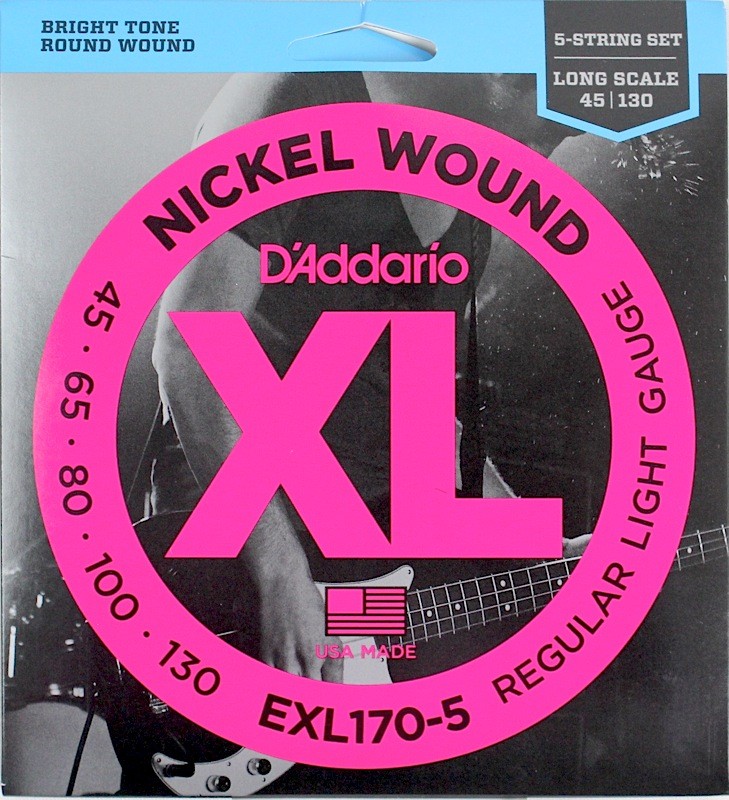 ダダリオ EXL170-5 5弦ベース弦です。34-36インチのベースに対応。ゲージは045/065/080/100/130。1セットでの販売です。