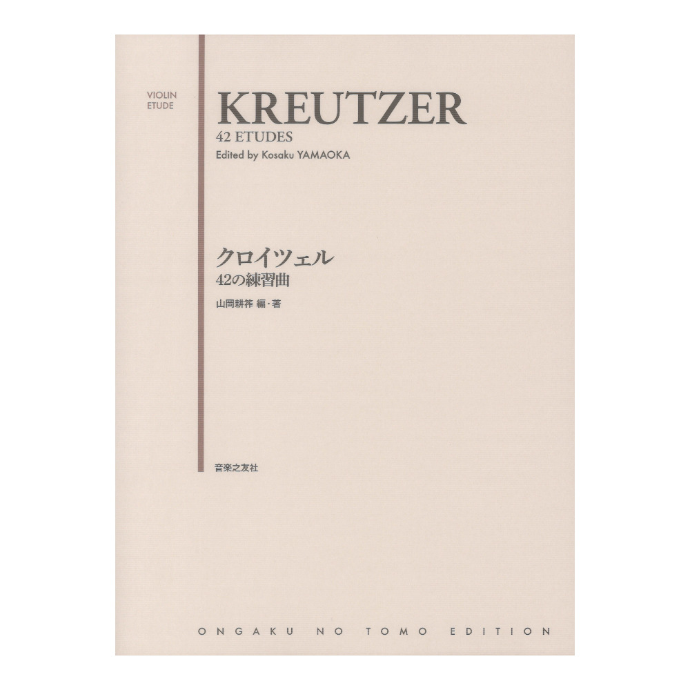ヴァイオリン中級以上の定番教本。42曲がそれぞれ明確な練習意図を持っており、多様なアーティキュレーションや音程で学習することにより、楽曲へのアプローチがしやすくなる。また、弾き手に細かな配慮のされたアドヴァイスが、実際に壁にぶつかったときに具体的な手助けとなってくれる。50年以上クロイツェル教本研究を熱心にされており、初版からさまざまな編纂まで調べつくしている山岡ならではの、信頼性のある、かつ人間味あふれる教本である。