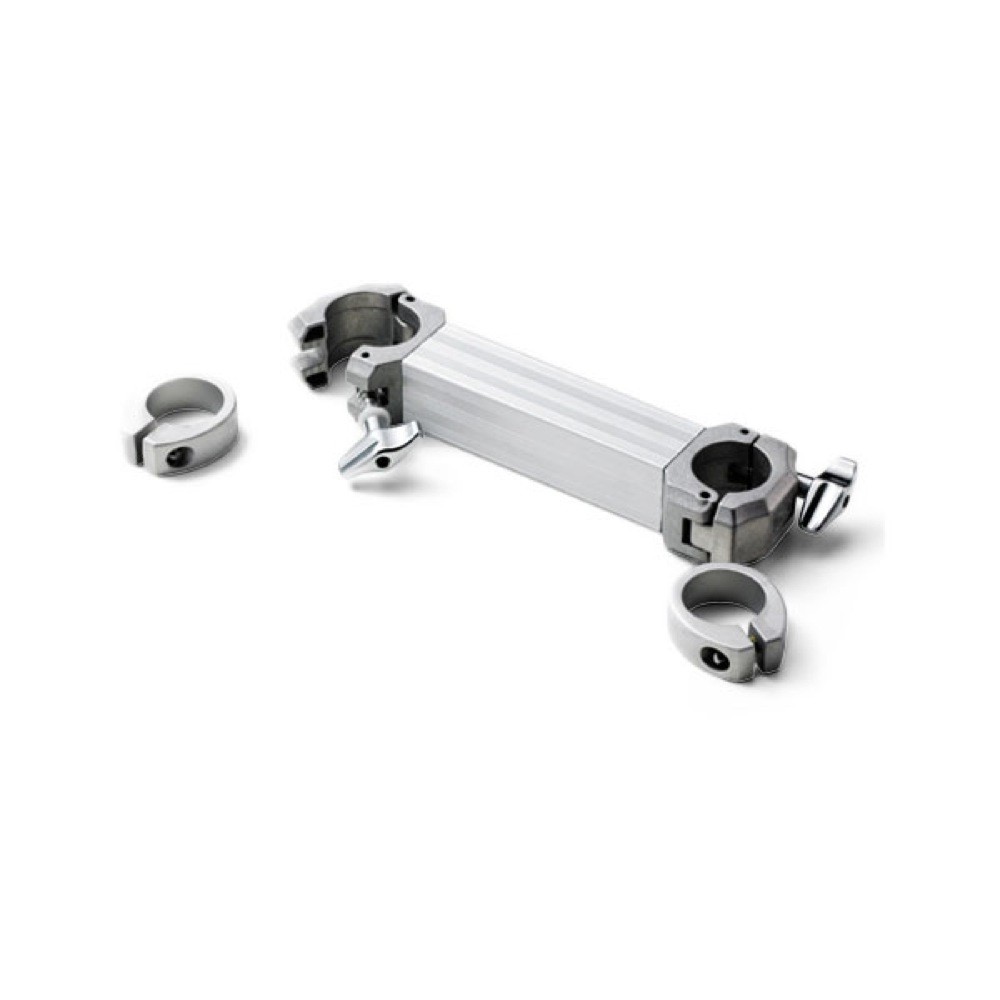 ツーバスセッティングに便利なスチールレッグ接続用アタッチメント。両側のジョイント・クランプは開閉式で、すばやいセッティングが可能。また、バーにはパイプクランプを2個取付けることができる。
