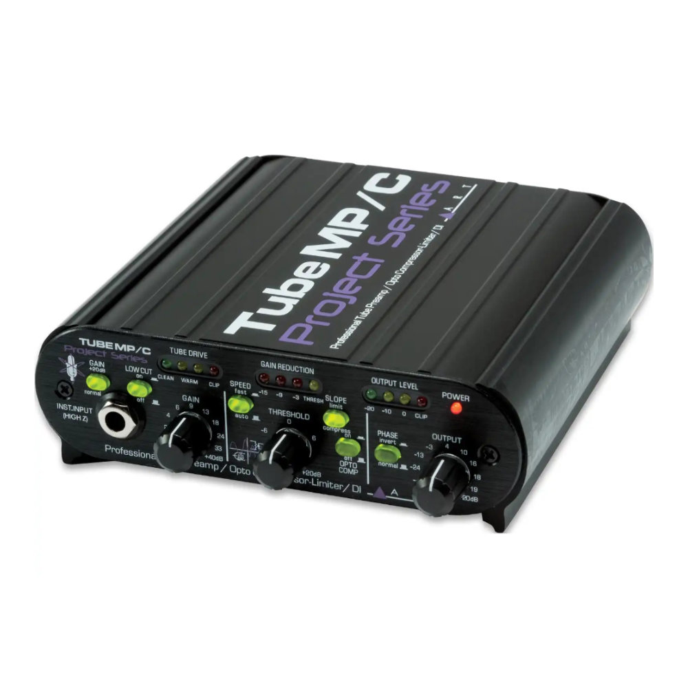 本機は、真空管プリアンプ/コンプ・リミッター/DIボックスです。非常に低ノイズで、コンプレッサーをバイパスしても使えます。