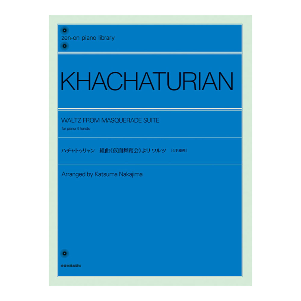 全音ピアノライブラリー ハチャトゥリャン 仮面舞踏会 より ワルツ 4手連弾版 全音楽譜出版社