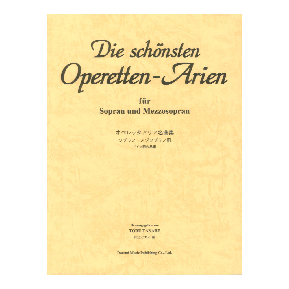 ドレミ楽譜出版社 オペレッタアリア名曲集 ソプラノ メゾソプラノ【楽譜】 「こうもり」「メリーウィドウ」などの有名作品をはじめ、ドイツ語圏の作品の中から、レハール、カールマン、シュトラウスの名作、そして日本ではまだ殆ど知られていないながら、本場ヨーロッパではスタンダードとして愛唱されているオペレッタからアリアを集めました。全ての曲に日本語詞、対訳、解説が付いています。