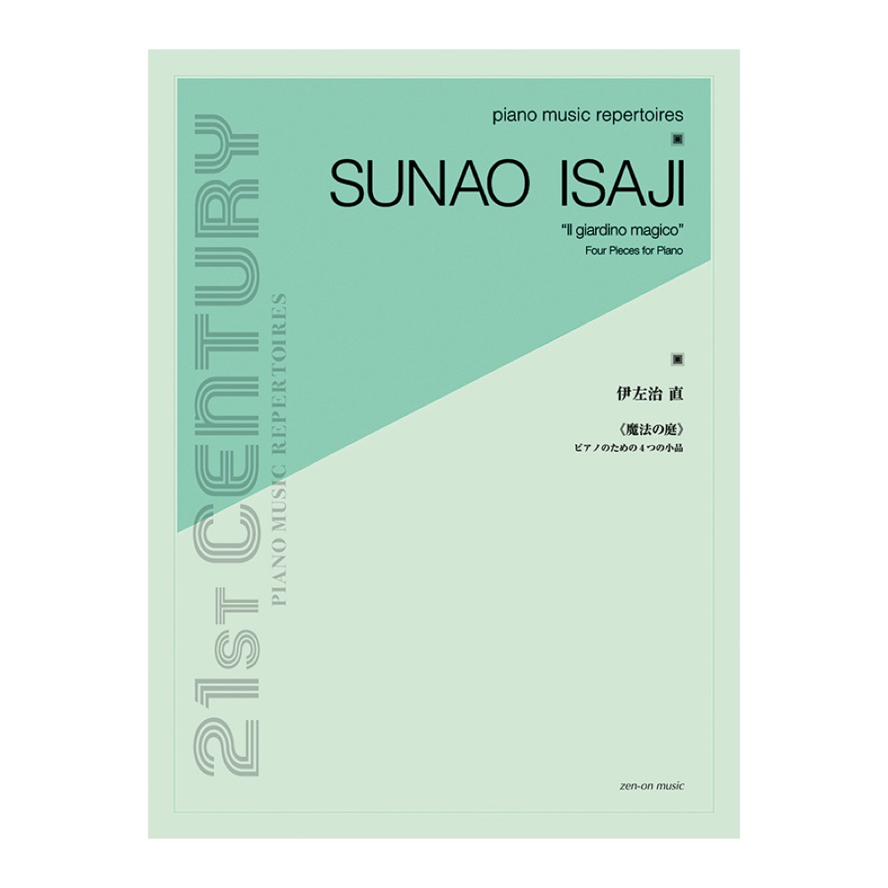 全音楽譜出版社 ピアノ・ミュージック・レパートリーズ 伊左治 直 魔法の庭 ピアノのための4つの小品【楽譜】 ピアノのための新しい作品のシリーズ\“21ST CENTURY / PIANO MUSIC REPERTOIRES\”(21世紀のピアノ音楽レパートリー)の第一号で、伊左治直がピアノ・ソロのために書いた4つの短い作品《舟歌》(1996年) 《魔法の庭》(2001年) 《夢の散歩》 《子守歌》(共に2002年)が収められています。