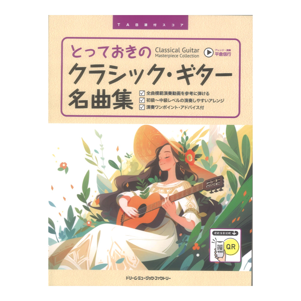 全てのギタリストが「弾けたらかっこいい」と思っているクラシック名曲の\“美味しいところ\”だけを厳選。QRコードから平倉信行による演奏動画が試聴できます。