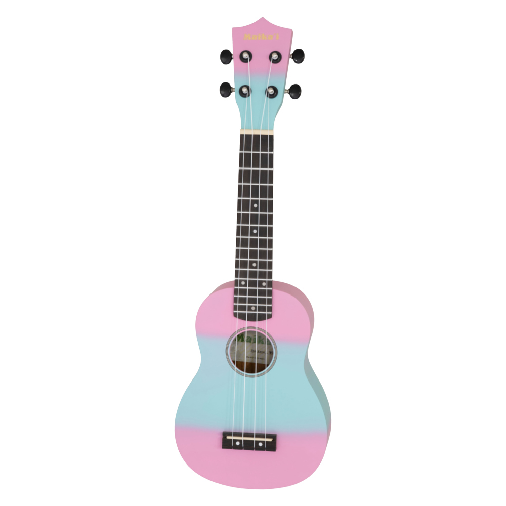 Maika’i マイカイ MKU-1 PKLB ピンク/ライトブルー ソプラノウクレレ ソフトケース付 チューニングがしやすく、安定性の高いギアペグを採用したソプラノウクレレです。 ソフトケース付属。 Body:Falcata Neck:Nato FingerBoard:Walnut Bridge:Walnut Scale:344mm Nut Width:38mm Finish:Pink/Light Blue(Limited Color) w/Bag