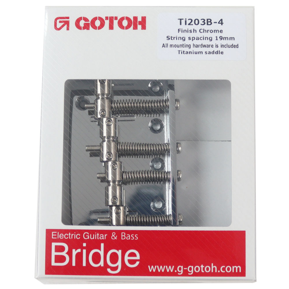 ゴトー GOTOH Ti203B-4C ベース用ブリッジ クローム ※ギターパーツの取り扱いには、相応の技術と知識が必要になります。自己責任にて、取り扱い可能な方のみ、ご検討下さい。個人的に取り付け時に起った、楽器及びパーツの破損・損傷等につきましては当店は保証出来ません。あらかじめご了承下さい。 管理品番:PTI203B-4C/D