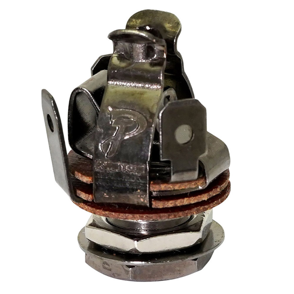 Pure Tone PTT2BN ステレオジャック ブラックニッケル ※ギターパーツの取り扱いには、相応の技術と知識が必要になります。自己責任にて取り扱い可能な方のみ、ご検討下さい。取り付け時に起った、楽器及びパーツの破損・損傷等につきましては当店は保証出来ません。あらかじめご了承下さい。 Pure Tone Jackとは? ジャックと言えばギターには欠かせないパーツです。ギターに搭載されるのは1/4インチのいわゆるフォンジャックが一般的です。元々は手動電話交換台に使用されていたものが100年以上もの間、多少のサイズ変更などはありながらも今も形を変えず使われています。Pure Tone Jack (ピュアトーンジャック)はそのジャック側に注目し、既存のフォンジャックが抱える問題に改良を加えた新しいジャックです。