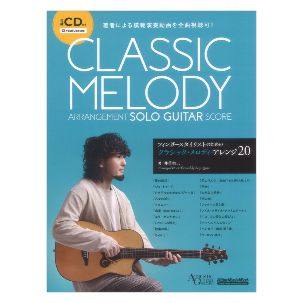 リットーミュージック フィンガースタイリストのためのクラシック メロディ アレンジ20【楽譜】 話題のギタリスト、井草聖二による アコーステイック・ギタリストのためのクラシック曲スコア集! ハイクオリティな演奏で人気を集めるソロ・ギタリスト、井草聖二による教則・スコア集の第3弾! 今回のテーマは古今東西、幅広く親しまれてきたクラシックや讃美歌曲。誰もがどこかで耳にしてきた計20曲をアコースティック・ギターによるフィンガー・スタイルで演奏できるようアレンジ。 初心者さんがチャレンジできる曲も用意しており、どんなレベルの方も模範演奏を収録した付録CDや演奏動画とともに楽しめます。