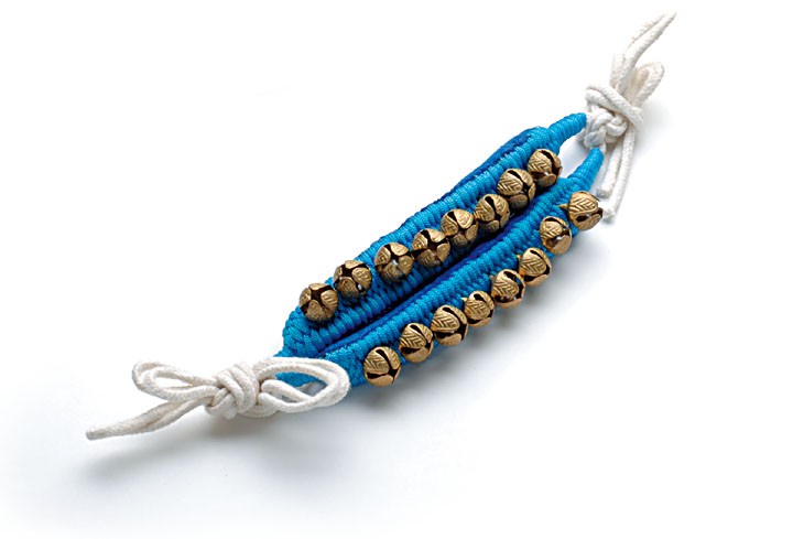 インド製の小さな鈴「ガングルー」をクッション付きのパッドに取付けました。