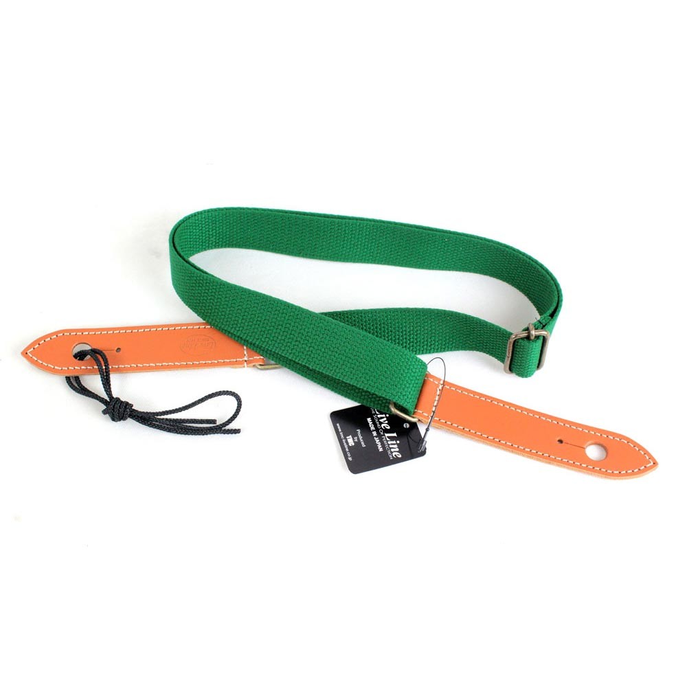 ライブライン ウクレレ ストラップ YUS14GRN グリーン 緑 LIVE LINE。コットンとアクリルを混合したAC素材を採用したシンプルな25mm幅ウクレレ用ストラップ。 ネック取り付け用のナイロン製ストラップコードを付属し、エンドピンとネックに固定する2点式となっています。長さ調節範囲:70〜116.5cm(エンドピン穴間を計測)カラー:グリーン