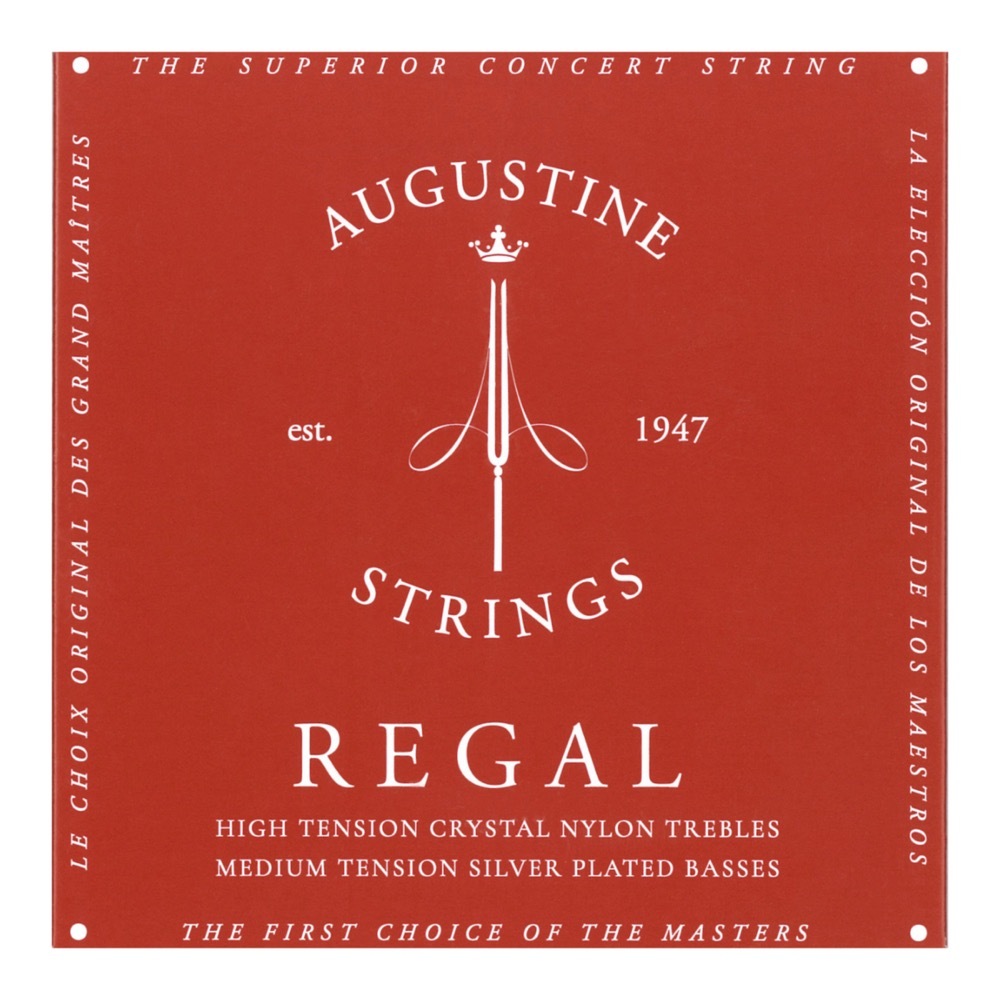 AUGUSTINE REGAL RED SET クラシックギター弦×3SET輝かしい音色と耐久性を誇るナイロン弦を世界で初めて開発、またたくまにギター弦の標準となり、ギタリストの間で絶大な人気を誇るブランド、それが「オーガスチン」です。音色、ピッチの安定度、耐久性、音量とあらゆる面で最高のクオリティを目指して作られた究極の高音弦がリーガルです。こちらのセットはリーガル高音弦(1弦、2弦、3弦)とレッド低音弦(4弦、5弦、6弦)の組み合わせになります。3セットでの販売です。