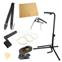 ヤマハのアコースティックギターにピック、ストラップ、カポタスト、ギタースタンド、換え弦、チューナー、クロス、ストリングワインダーをお付けした9点セットです。